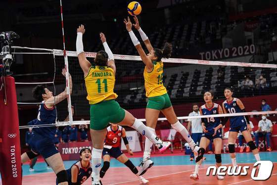 브라질 여자배구 선수 명단 2번 캐롤 가타스, 7번 조자마리아, 8번.